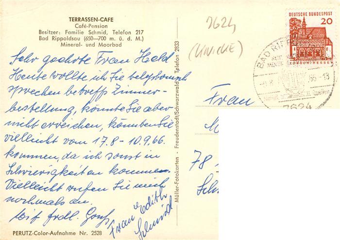 73931805 alte Postkarte Bad Rippoldsau Schwarzwald Terrassen Cafe Gastraum postalisch gelaufen Erhaltung siehe scans [WerneD78] KatCode: 11110008237075