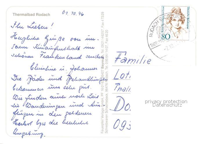 72976118 alte Postkarte Bad Rodach Thermalbad postalisch gelaufen Erhaltung siehe scans [LiesaD40] KatCode: 11110009473158