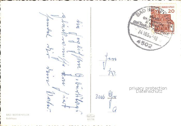 72207602 alte Postkarte Bad Rothenfelde Badehaus postalisch gelaufen Erhaltung siehe scans KatCode: 11110003459006