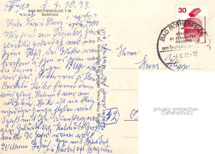 72966941 alte Postkarte Bad Rothenfelde Badehaus postalisch gelaufen Erhaltung siehe scans [LiesaD40] KatCode: 11110003459006