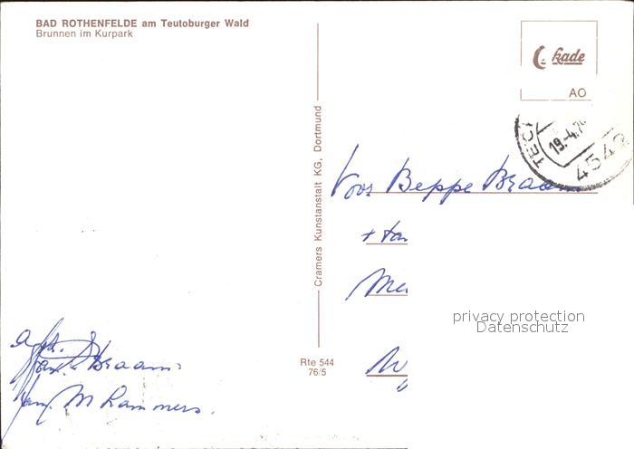 72325869 alte Postkarte Bad Rothenfelde Brunnen im Kurpark postalisch gelaufen Erhaltung siehe scans KatCode: 11110003459006