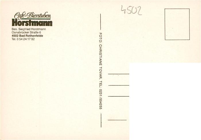 73936281 Bad Rothenfelde Cafe und Bierstuben Horstmann postalisch nicht gelaufen Erhaltung siehe scans [WerneD78] KatCode: 11110003459006