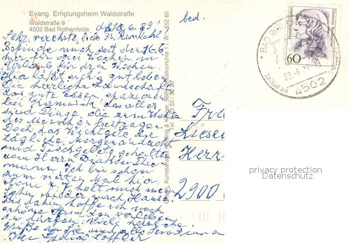 73637728 alte Postkarte Bad Rothenfelde Evangelisches Erholungsheim Waldstrasse postalisch gelaufen Erhaltung siehe scans [FriedD77] KatCode: 11110003459006