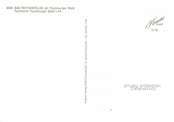72691350 Bad Rothenfelde Fachklinik Teutoburger Wald LVA am Teutoburger Wald postalisch nicht gelaufen Erhaltung siehe scans [FriedD77] KatCode: 11110003459006