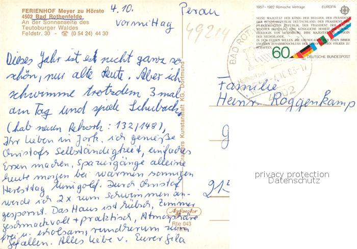73569297 alte Postkarte Bad Rothenfelde Ferienhof Meyer zu H?rste postalisch gelaufen Erhaltung siehe scans [PaolaD17] KatCode: 11110003459006