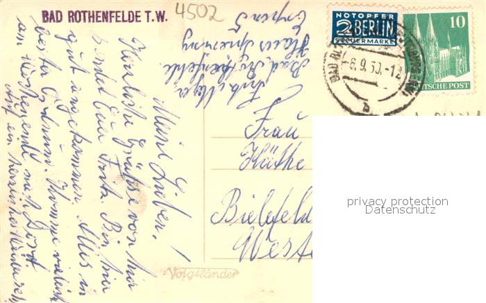 73707378 alte Postkarte Bad Rothenfelde Fliegeraufnahme postalisch gelaufen Erhaltung siehe scans [LiesaD40] KatCode: 11110003459006