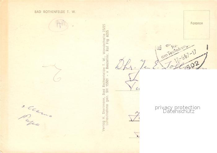 73284988 alte Postkarte Bad Rothenfelde Fliegeraufnahme postalisch gelaufen Erhaltung siehe scans [LiesaD40] KatCode: 11110003459006