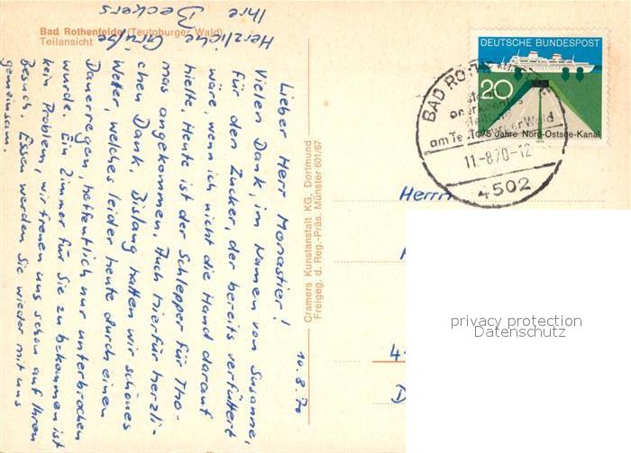 73100022 alte Postkarte Bad Rothenfelde Fliegeraufnahme postalisch gelaufen Erhaltung siehe scans [WerneD78] KatCode: 11110003459006
