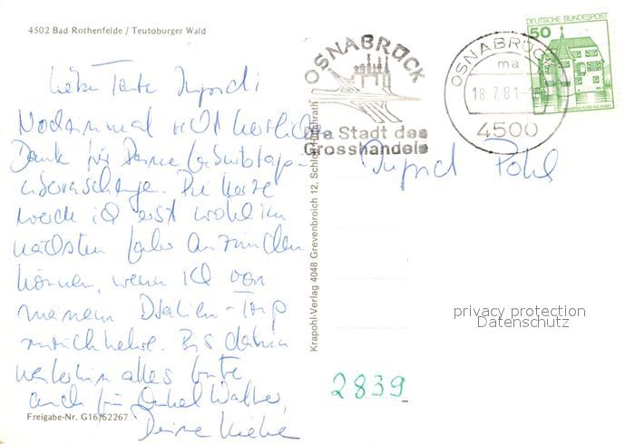 72943942 alte Postkarte Bad Rothenfelde Fliegeraufnahme postalisch gelaufen Erhaltung siehe scans [KathaD81] KatCode: 11110003459006