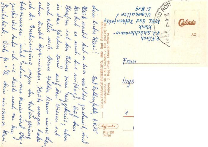 73907444 alte Postkarte Bad Rothenfelde Fliegeraufnahme postalisch gelaufen Erhaltung siehe scans [WerneD78] KatCode: 11110003459006