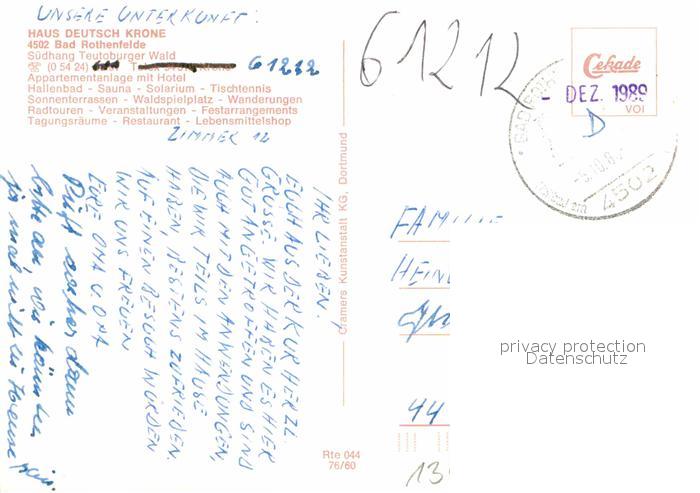 72913709 alte Postkarte Bad Rothenfelde Haus Deusch-Krone Schwimmbad Fliegeraufnahme Gradierwerk postalisch gelaufen Erhaltung siehe scans [LiesaD40] KatCode: 11110003459006