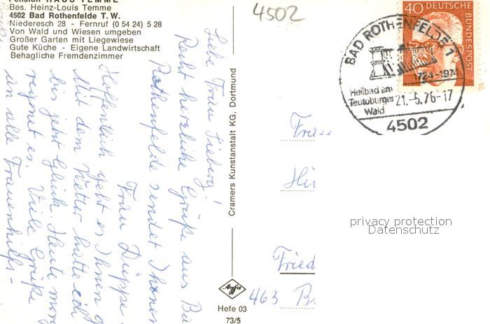 73708951 alte Postkarte Bad Rothenfelde Haus Temme Gartenansicht postalisch gelaufen Erhaltung siehe scans [LiesaD40] KatCode: 11110003459006