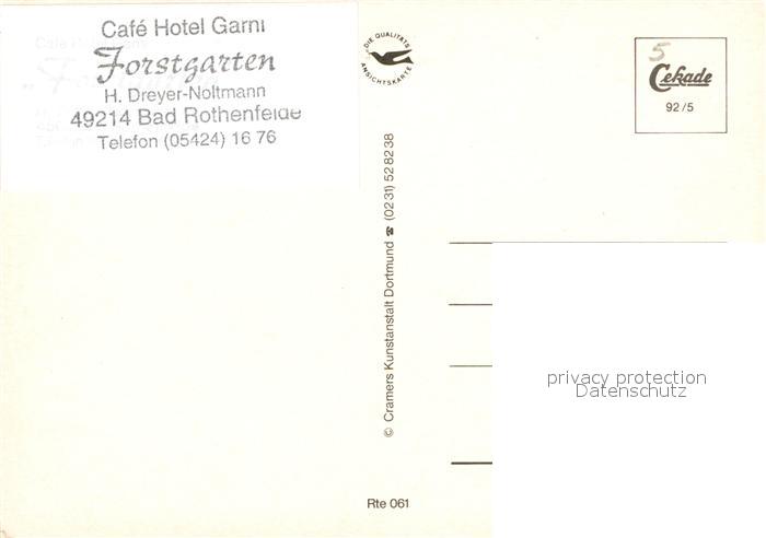 73125904 Bad Rothenfelde Hotel Forstgarten postalisch nicht gelaufen Erhaltung siehe scans [NatalD47] KatCode: 11110003459006