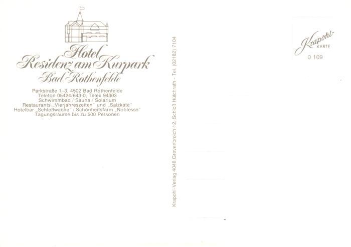 73942317 Bad Rothenfelde Hotel Residenz am Kurpark postalisch nicht gelaufen Erhaltung siehe scans [FriedD77] KatCode: 11110003459006
