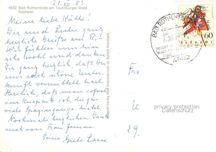 73019133 alte Postkarte Bad Rothenfelde Kaskade postalisch gelaufen Erhaltung siehe scans [WerneD78] KatCode: 11110003459006