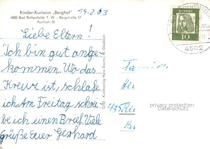 72939719 alte Postkarte Bad Rothenfelde Kinderkurheim Berghof postalisch gelaufen Erhaltung siehe scans [FriedD77] KatCode: 11110003459006