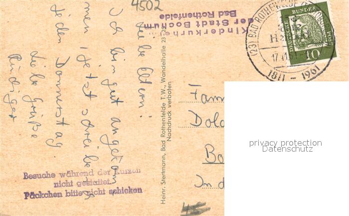 73699303 alte Postkarte Bad Rothenfelde Kinderkurheim der Stadt Bochum postalisch gelaufen Erhaltung siehe scans [FriedD77] KatCode: 11110003459006