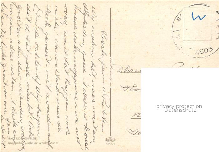 73306233 alte Postkarte Bad Rothenfelde Knappschaftskurheim Weidtmanshof postalisch gelaufen Erhaltung siehe scans [WerneD78] KatCode: 11110003459006