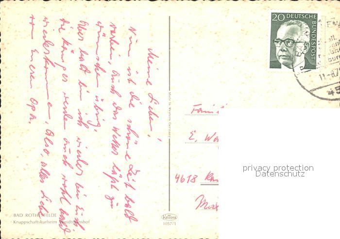 72237023 alte Postkarte Bad Rothenfelde Knappschaftskurheim Weidtmanshof postalisch gelaufen Erhaltung siehe scans KatCode: 11110003459006