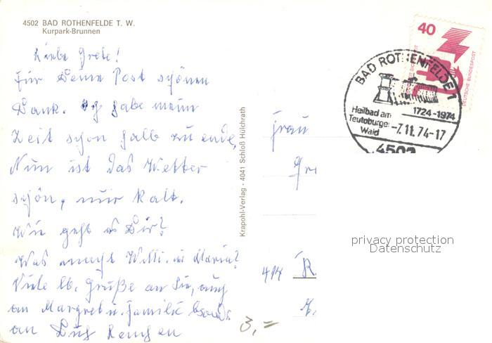 73093666 alte Postkarte Bad Rothenfelde Kurpark-Brunnen postalisch gelaufen Erhaltung siehe scans [NatalD47] KatCode: 11110003459006