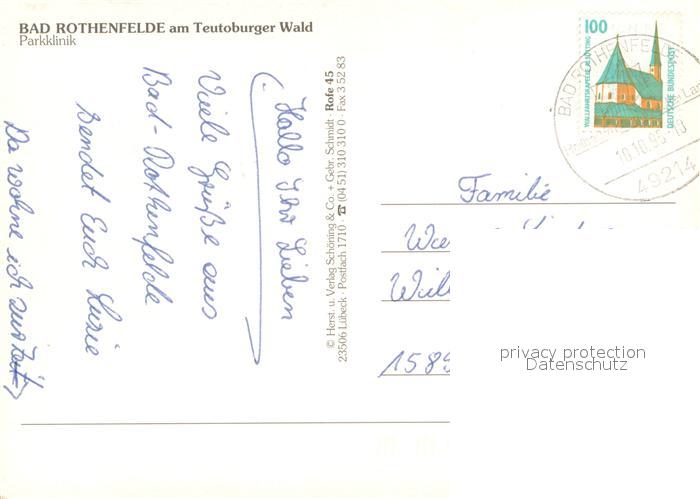 73660385 alte Postkarte Bad Rothenfelde Parkklinik postalisch gelaufen Erhaltung siehe scans [FriedD77] KatCode: 11110003459006