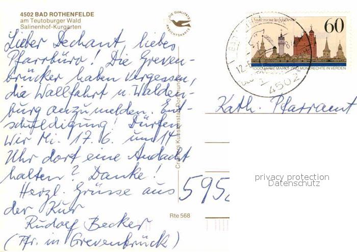 72723055 alte Postkarte Bad Rothenfelde Salinenhof Kurgarten postalisch gelaufen Erhaltung siehe scans [FriedD77] KatCode: 11110003459006