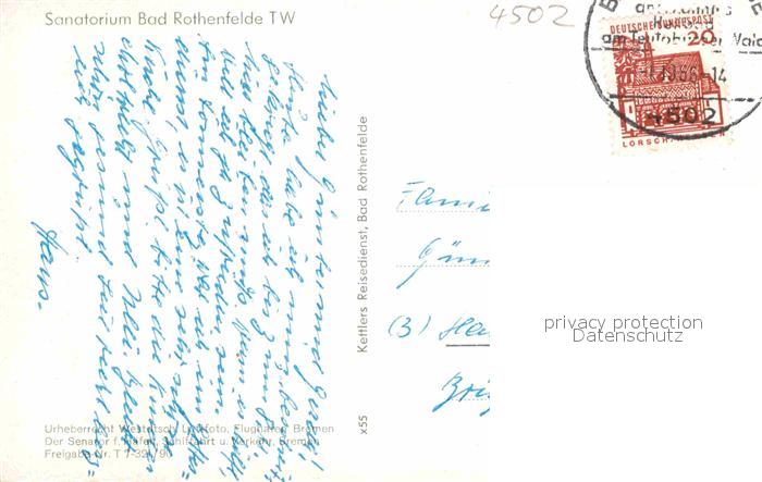 72886758 alte Postkarte Bad Rothenfelde Sanatorium Fliegeraufnahme postalisch gelaufen Erhaltung siehe scans [WerneD78] KatCode: 11110003459006