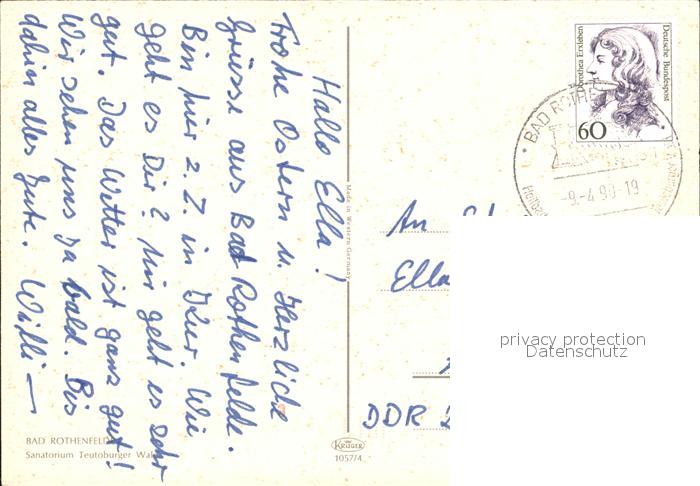 72480999 alte Postkarte Bad Rothenfelde Sanatorium Teutoburger Wald postalisch gelaufen Erhaltung siehe scans KatCode: 11110003459006