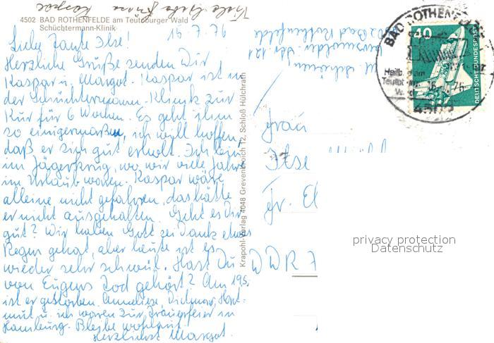 73028971 alte Postkarte Bad Rothenfelde Schuechtermann-Klinik postalisch gelaufen Erhaltung siehe scans [PaolaD17] KatCode: 11110003459006