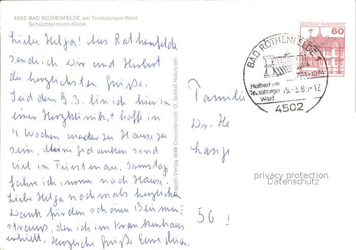 72023111 alte Postkarte Bad Rothenfelde Schuechtermann Klinik postalisch gelaufen KatCode: 11110003459006