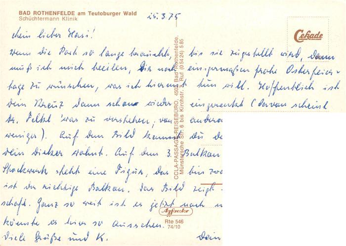 73915373 Bad Rothenfelde Schuechtermann Klinik postalisch nicht gelaufen Erhaltung siehe scans [WerneD78] KatCode: 11110003459006