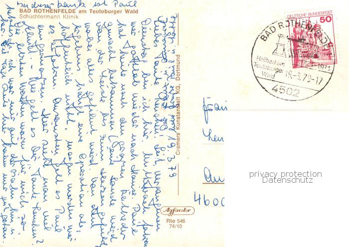 73814946 alte Postkarte Bad Rothenfelde Schuechtermann Klinik postalisch gelaufen Erhaltung siehe scans [WerneD78] KatCode: 11110003459006