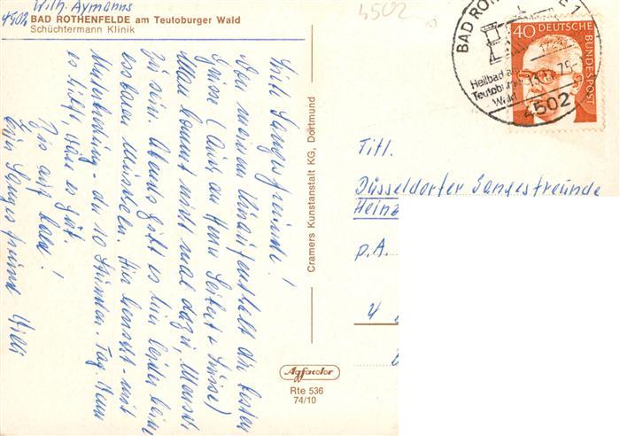73936267 alte Postkarte Bad Rothenfelde Schuechtermann Klinik postalisch gelaufen Erhaltung siehe scans [WerneD78] KatCode: 11110003459006