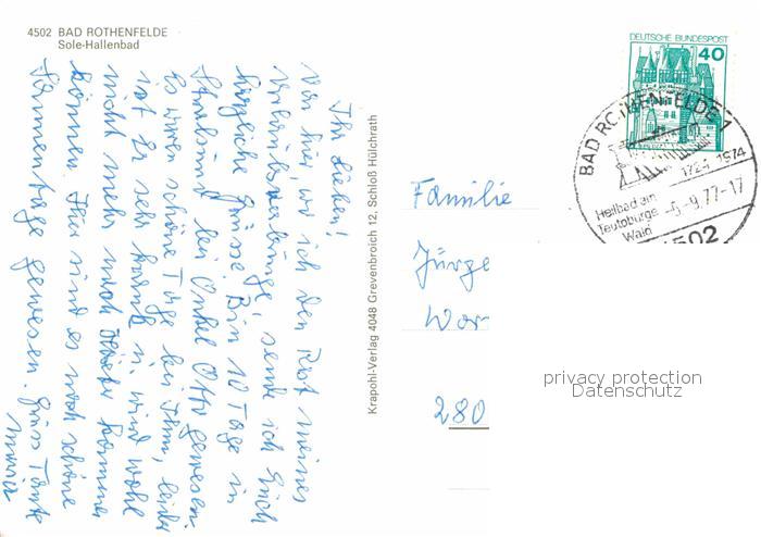 72724917 alte Postkarte Bad Rothenfelde Sole-Hallenbad postalisch gelaufen Erhaltung siehe scans [LiesaD40] KatCode: 11110003459006