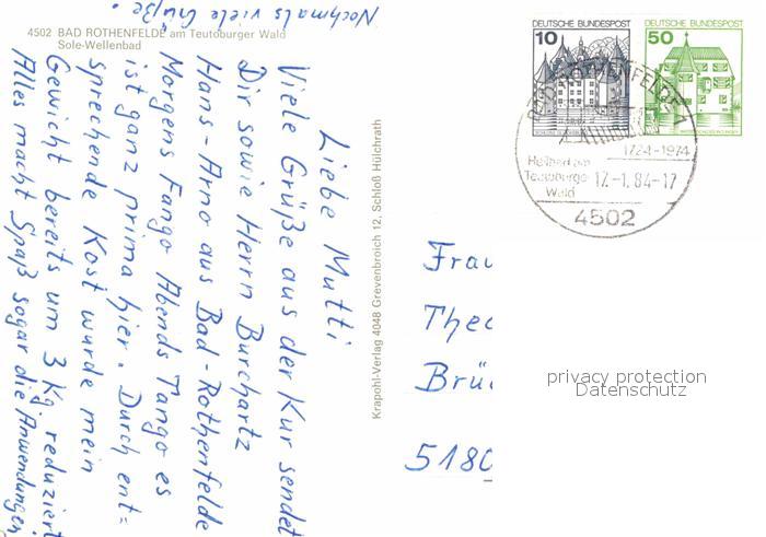 72916386 alte Postkarte Bad Rothenfelde Sole Wellenbad am Teutoburger Wald postalisch gelaufen Erhaltung siehe scans [LiesaD40] KatCode: 11110003459006