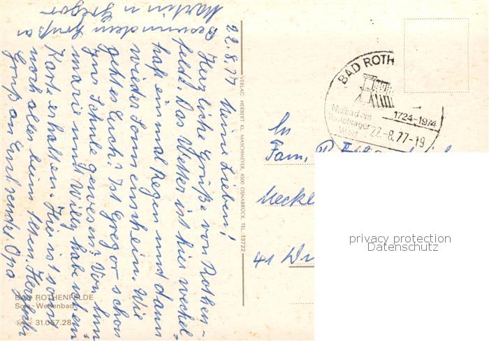 73814947 alte Postkarte Bad Rothenfelde Sole Wellenbad postalisch gelaufen Erhaltung siehe scans [WerneD78] KatCode: 11110003459006