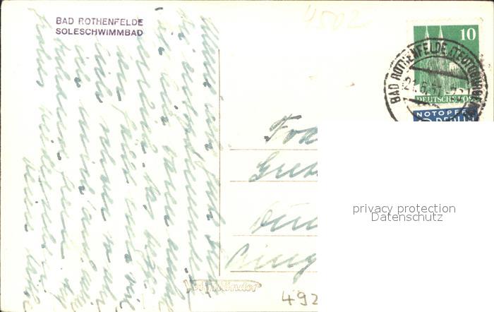 71928441 alte Postkarte Bad Rothenfelde Soleschwimmbad postalisch gelaufen Erhaltung siehe scans KatCode: 11110003459006
