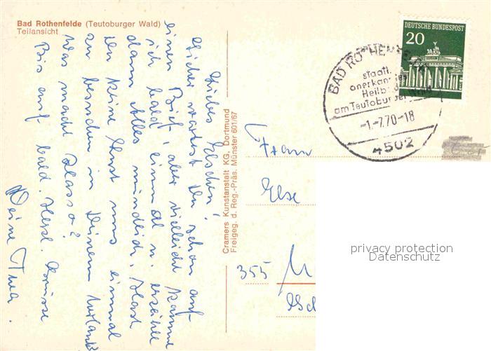 72868741 alte Postkarte Bad Rothenfelde Teilansicht Fliegeraufnahme postalisch gelaufen Erhaltung siehe scans [FriedD77] KatCode: 11110003459006
