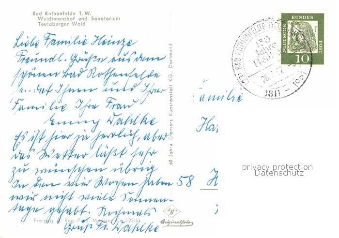 72816533 alte Postkarte Bad Rothenfelde Weidtmanshof und Sanatorium Teutoburger Wald Fliegeraufnahme postalisch gelaufen Erhaltung siehe scans [FriedD77] KatCode: 11110003459006