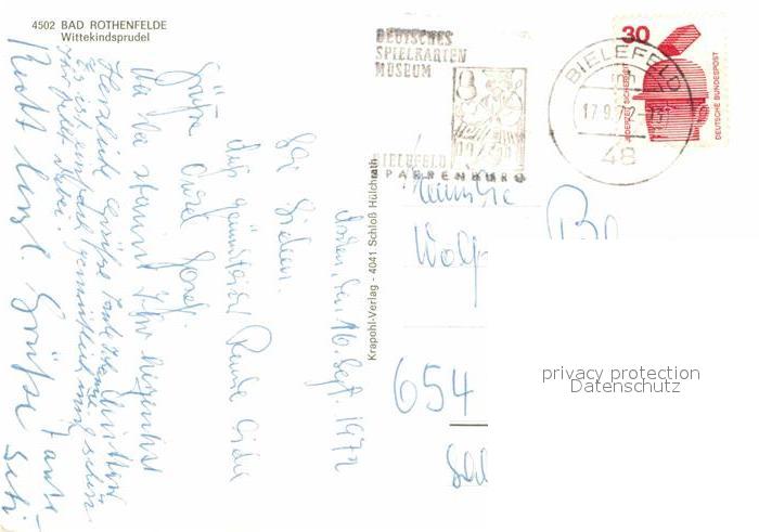 72878664 alte Postkarte Bad Rothenfelde Wittekindsprudel postalisch gelaufen Erhaltung siehe scans [FriedD77] KatCode: 11110003459006