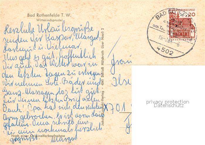 73028970 alte Postkarte Bad Rothenfelde Wittekindsprudel postalisch gelaufen Erhaltung siehe scans [PaolaD17] KatCode: 11110003459006