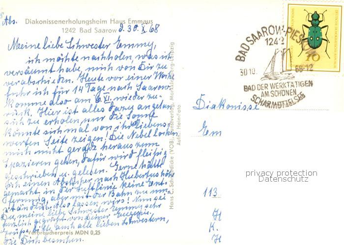 73099303 alte Postkarte Bad Saarow Diakonissenerholungsheim Haus Emmaus postalisch gelaufen Erhaltung siehe scans [KathaD81] KatCode: 11110012067024