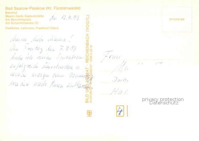 73304589 Bad Saarow-Pieskow Bahnhof Maxim Gorki Gedenkstaette Bahnhofsplatz Scharmuetzelsee postalisch nicht gelaufen Erhaltung siehe scans [FriedD77] KatCode: 11110012067024