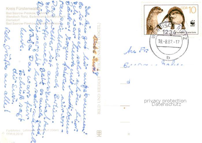 73013702 alte Postkarte Bad Saarow-Pieskow Bahnhof Schwanenwiese Wendisch Rietz Badestrand Schwarzhorn Diensdorf postalisch gelaufen Erhaltung siehe scans [WerneD78] KatCode: 11110012067024