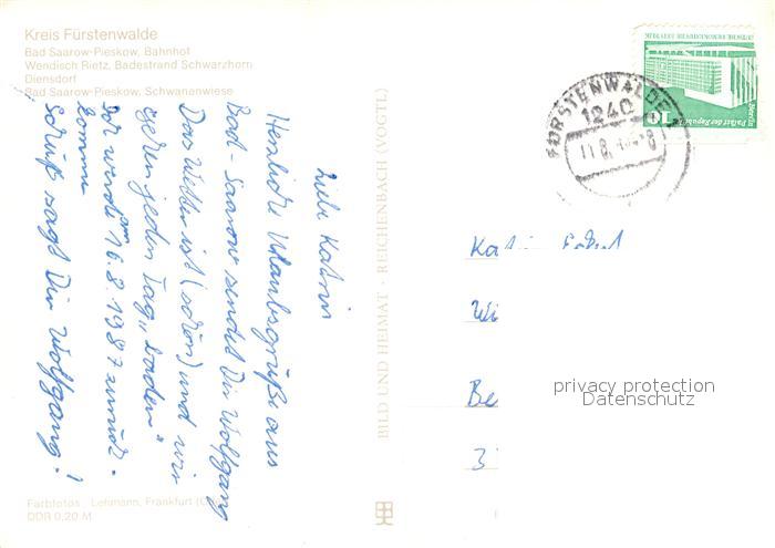 73072028 alte Postkarte Bad Saarow-Pieskow Bahnhof WEndisch Rietz Diensdorf postalisch gelaufen Erhaltung siehe scans [NatalD47] KatCode: 11110012067024