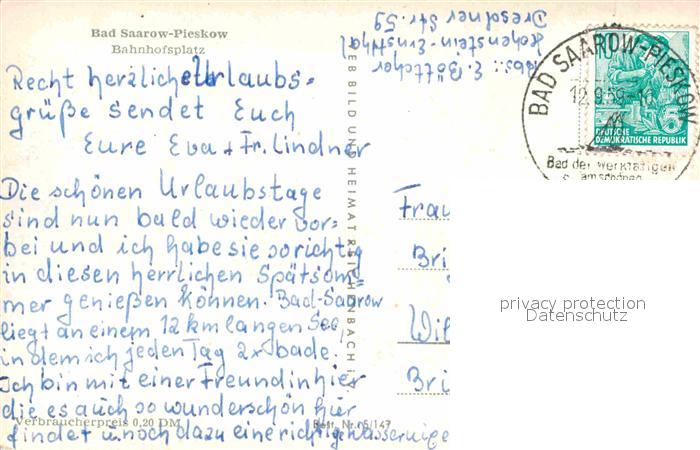 72699605 alte Postkarte Bad Saarow-Pieskow Bahnhofsvorplatz postalisch gelaufen Erhaltung siehe scans [LiesaD40] KatCode: 11110012067024