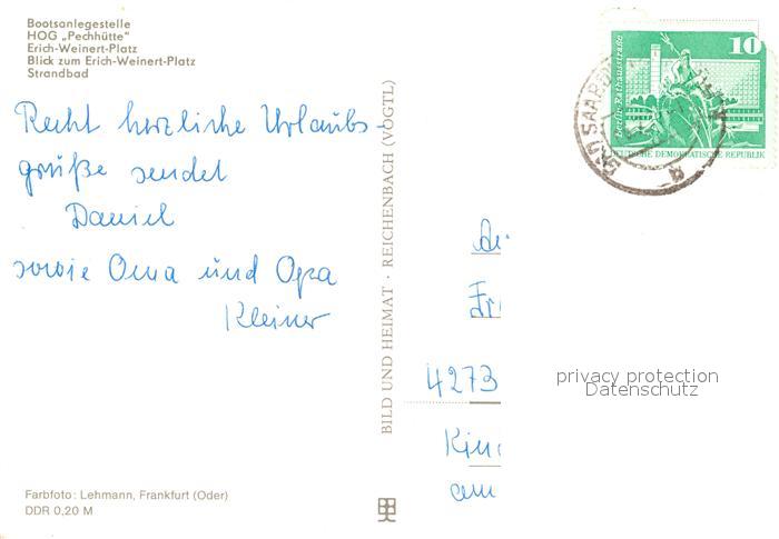 73061788 alte Postkarte Bad Saarow-Pieskow Bootsanlegestelle HOG Pechhuette Erich Weinert Platz Strandbad postalisch gelaufen Erhaltung siehe scans [FriedD77] KatCode: 11110012067024