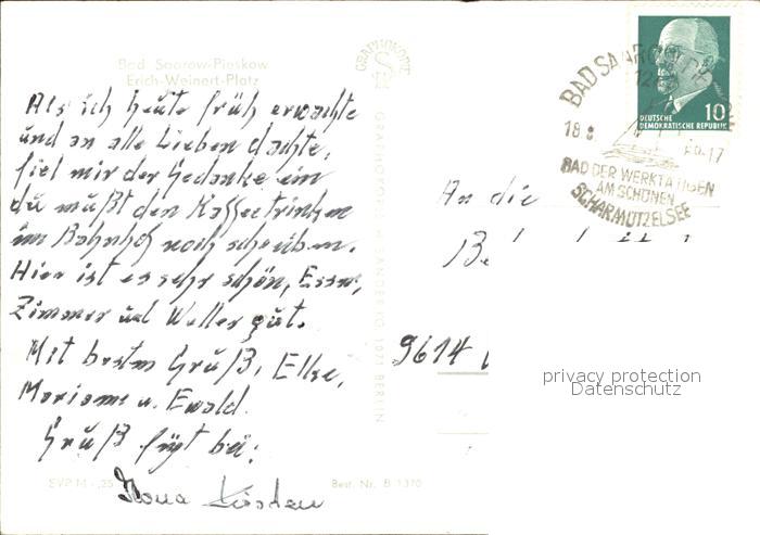 72199376 alte Postkarte Bad Saarow-Pieskow Erich Weinert Platz postalisch gelaufen Erhaltung siehe scans KatCode: 11110012067024
