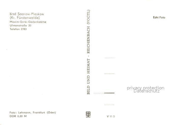 73105709 Bad Saarow-Pieskow Maxim Gorki Gedenkstaette postalisch nicht gelaufen Erhaltung siehe scans [KathaD81] KatCode: 11110012067024