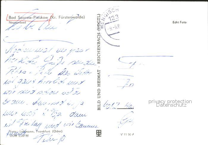 72335746 alte Postkarte Bad Saarow-Pieskow Neptunbad postalisch gelaufen Erhaltung siehe scans KatCode: 11110012067024